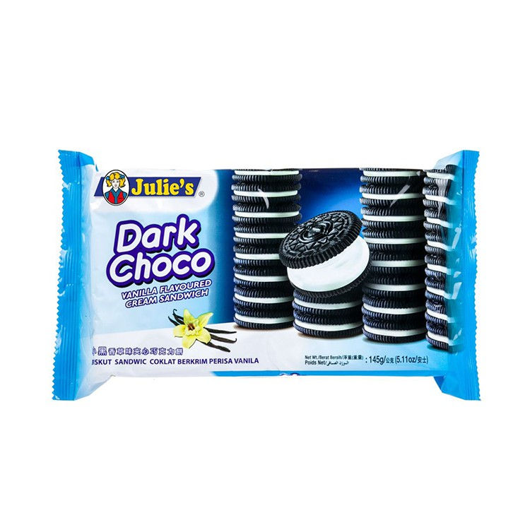 JULIES DARK CHOCO VANILLA FLAVOURED CREAM SANDWICH